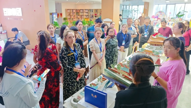 在豆神動漫精心打造的文創(chuàng)展示區(qū),《走近孔子》曲阜孔廟立體書以精巧結(jié)構(gòu)復(fù)原孔廟中軸線建筑,配合多處互動機關(guān),讓孩子們驚嘆“文物居然能帶回家”;《孔爺爺》六藝盲盒、《小呆雞》文創(chuàng)文具等,把國學(xué)知識融入日常器物,讓文化變得可觸、可感、可用。